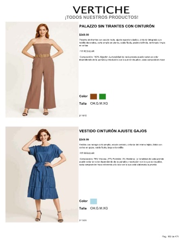 Composición; 70% Viscosa, 27% Poliéster, 3% Elastano; La tonalidad de cada prenda