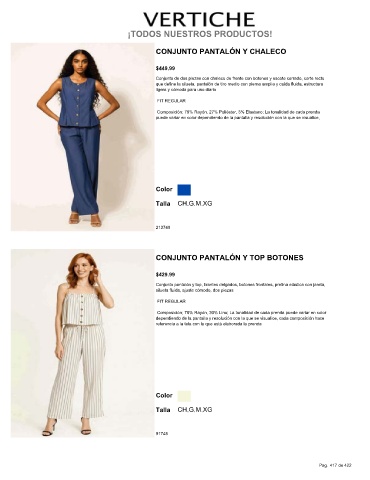 Composición; 70% Rayón, 27% Poliéster, 3% Elastano; La tonalidad de cada prenda