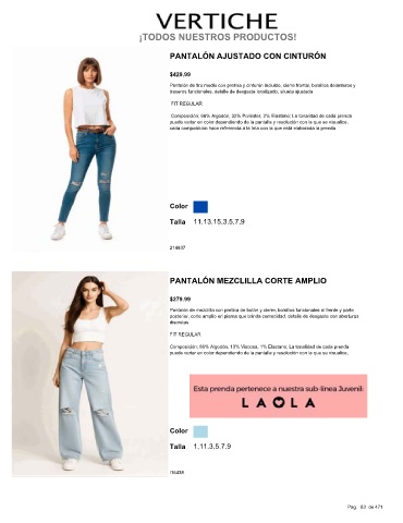 Composición; 86% Algodón, 13% Viscosa, 1% Elastano; La tonalidad de cada prenda