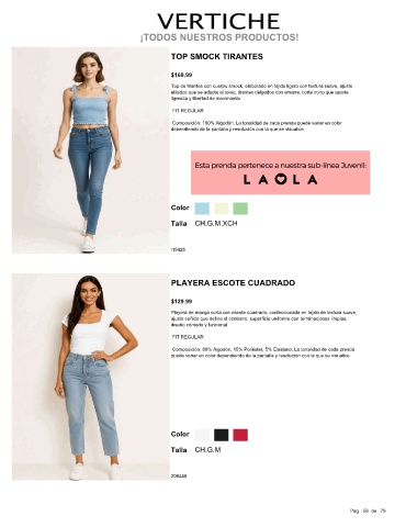 Composición; 80% Algodón, 15% Poliéster, 5% Elastano; La tonalidad de cada prenda